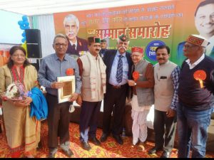 (रिटायर्ड मेजर जनरल जीडी बख्शी भव्य सम्मान समारोह में स्वतंत्रता सेनानी बख्शी सत्य भूषण शास्त्री जी को सम्मानित करते हुए)